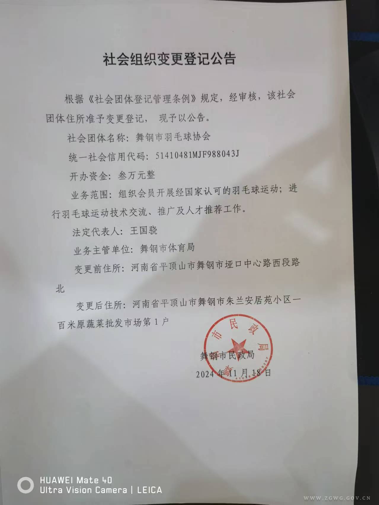 社会组织变更登记公告