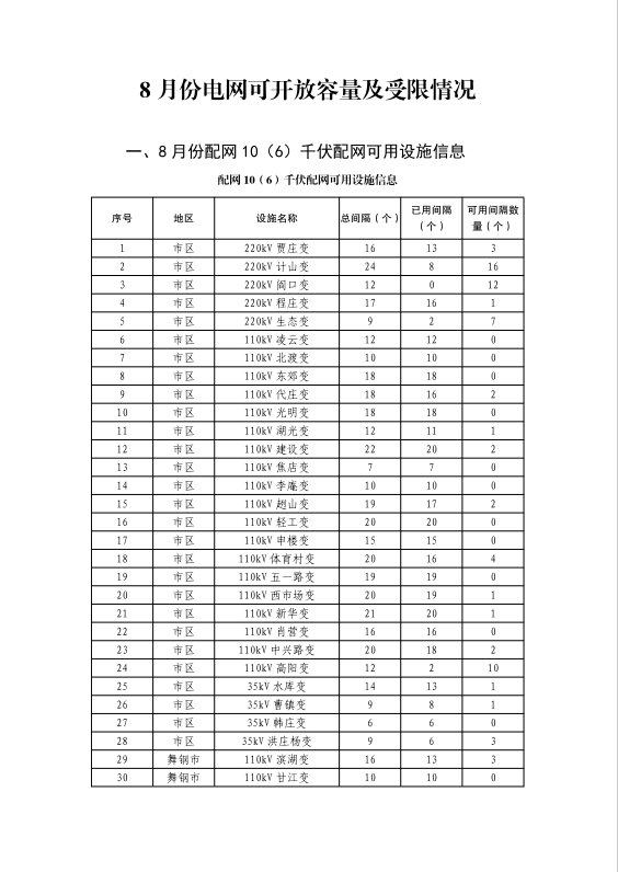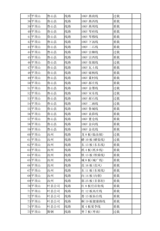 平顶山供电公司电网可开放容量及受限情况